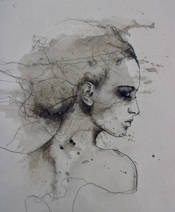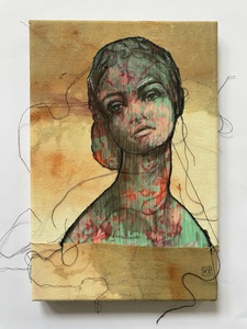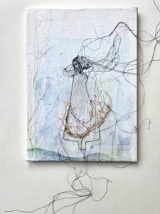 Een figuratief werk van draad & acryl. De losse draden staan voor groei & verandering.