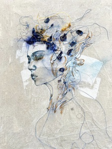 Een figuratief werk met een vleugje realisme in gemengde technieken.